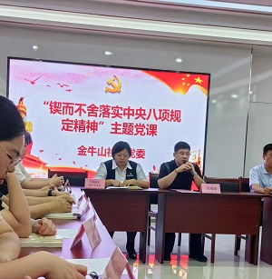 6月18日,金牛山社区党委以“锲而不舍落实中央八项规定精神”为主题,为金牛山园区各公司党支部书记讲授深入贯彻中央八项规定精神学习教育专题党课。党课伊始,社区党委负责人带领大家逐字逐句研读中央八项规定原文及实施细则,深入解读其核心要义与精神实质,让在场的党支部书记们深刻认识到,中央八项规定不仅是工作中的行为准则,更是密切党群干群关系、巩固党的执政基础的重要保障。