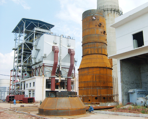 现脱硫塔主体高度已施工至20.8m,除雾器安装层已在地面组合,确保八月上旬完成封顶任务。