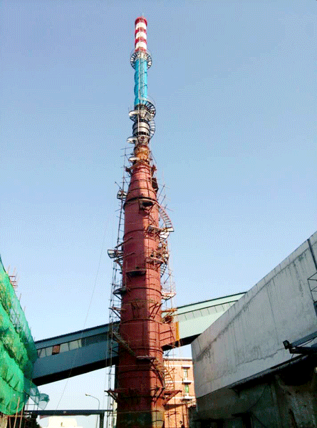 由于本工程项目工期紧、任务重,正逢雨季施工给施工进展带来诸多的不利因素,项目部为把控合同工期、质量目标,针对本工程的实际情况,对施工流程进行科学优化、合理布局、严格管理,协同各施工单位,积极配合并做好技术指导与作业流程监控。三个月来,在业主与监理单位的大力支持下,现场施工团队发扬了艰苦奋斗的作业精神,克服各种困难,于2014年3月22日全高65m的1#脱硫塔(烟塔合一)顺利封顶,已具备移交下一道防腐工序施工。2#脱硫塔计划于2014年4月10日全面封顶。
