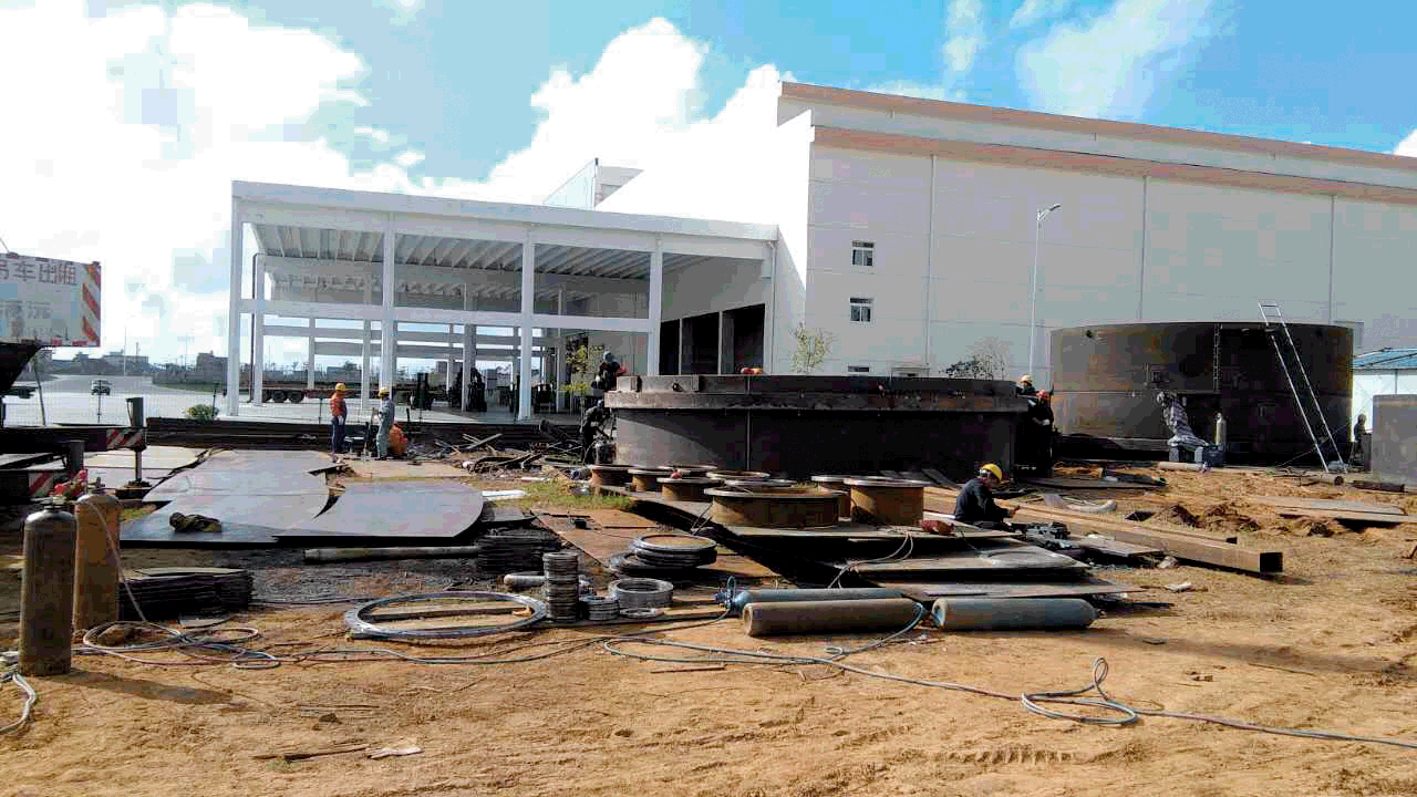 为确保本工程尽早竣工并交付业主商业运行,在业主方土建基础建设不具备安装条件的情况下,我公司先行组织项目部和施工班组进场,提前进行施工预制。因脱硫、湿电、烟囱合一塔基础尚未交付安装,不能将已预制好的筒体及构件在基础上组装,导致施工场地空间严重不足,施工作业面小。我公司项目部统筹规划,明确施工工序及物料摆放位置,最大限度节省空间,提高作业效率,以保证施工正常进行。