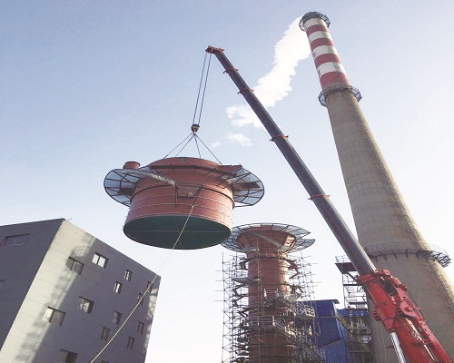 广饶县大王热力有限公司75t/h锅炉烟气脱硫湿电一体化项目,目前土建部分配电房、循环泵房、氧化风机房及系统设备基础等主体结构已施工完成;机务部分脱硫湿电一体塔脱硫段、湿电段下锥段和筒体及平台斜梯已组装完成。